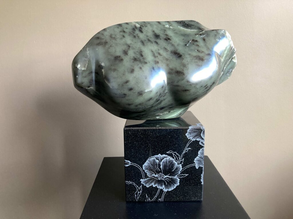 Bezieling in beeld Agnes kiest een steen uit en werkt dan intuïtief, al spelend met de vorm van de steen en het materiaal. Ze werkt vaak in series. Zo vormden haar eerste werken de serie ‘Slow Fashion Stones’, als reactie op haar roman Fast Fashion die ze schreef na haar modecarrière.